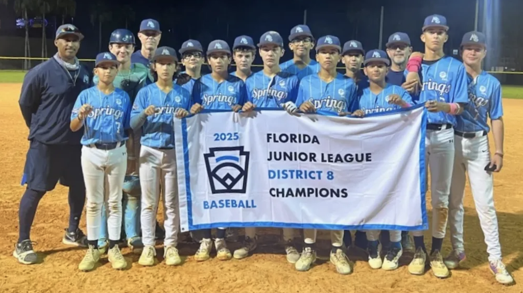 Congratulations to the Miami Springs Little League Juniors Baseball All-Star team which won the 2025 District 8 championship on Tuesday, June 10 at Doral Meadows Park. Springs defeated Doral LL in the best-of-three series 12-1 and 9-3. The accomplishment in the Juniors Division is the first in over a decade for MSLL. Springs advances to the Section 8 Series against Fort Lauderdale LL later this month.